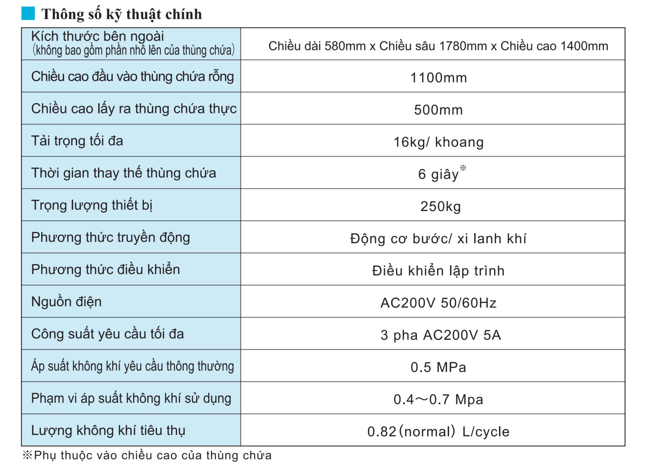 Thời gian chu kỳ thay hộp nhanh nhất 6 giây.